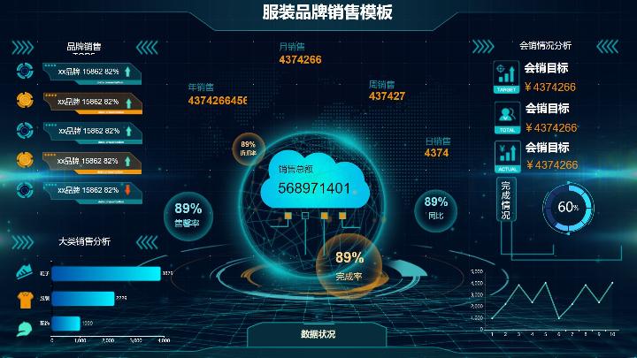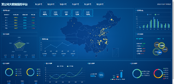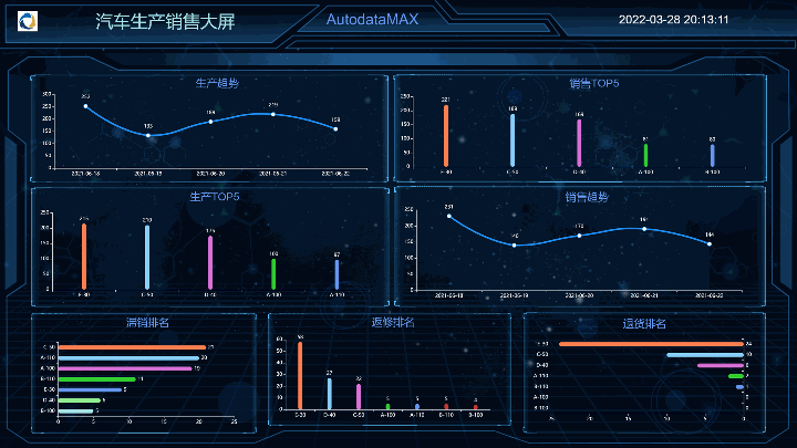 Web大数据可视化是全新的一个BI平台,集成在AutodataMAX企业报表平台之中,可以将酷炫大屏在Web中展示,可以让领导随时随地掌控最新业务及生产动态,让每个决策都有实时数据支撑。